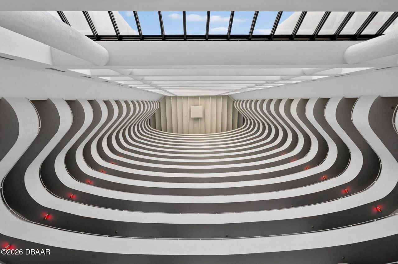 Experience breathtaking oceanfront living from the 17th floor at The Sherwin in Daytona Beach Shores. This beautifully upgraded home offers sweeping Atlantic Ocean AND river views. Wake up to the sunrise over the ocean from two of the oceanfront bedrooms and a spacious wrap-around balcony perfect for enjoying sunrise over the ocean and sunset over the river.The updated kitchen features quartz countertops, custom cabinetry, stainless steel appliances, beverage cooler, and abundant storage, ideal for everyday living and entertaining. Newer windows and sliding glass doors fill the home with natural light while showcasing the spectacular views.Rare features include two secure underground garage parking spaces and additional storage. The Sherwin offers resort-style amenities including a heated saltwater oceanfront pool, hot tub, sauna, fitness center, library/social room, billiards room, penthouse clubroom, landscaped grounds with firepit, 24/7 front desk service, and on-site management Two pets allowed and two-week minimum rentals permitted. Enjoy luxury oceanfront living in one of Daytona Beach Shores' most desirable buildings.