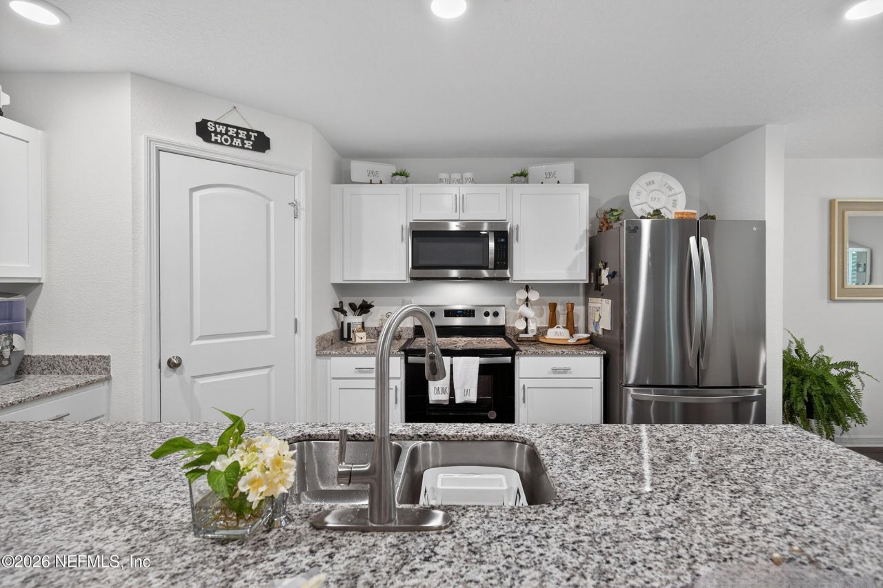 Welcome to Palm Coast, and Florida living at its best. You deserve this Charmin move-in ready 4bed and 2Bath home located in a fast-growing neighborhood. The 2023 built Brandywine floor plan features approx. 1800 sq ft of modern living space and open concept with white shaker kitchen cabinets, large kitchen island and granite counter tops, vinyl flooring/carpet, LED lighting and Stainless-Steel Appliances and separate laundry room. Eight-foot ceilings throughout provides a bright and airy feel with the perfect mix of comfort and functionality-plenty privacy and space for everyone. Enjoy the convenience of a 2-car garage, energy-efficient construction, concrete block exterior walls and covered back patio. Palm Coast offers a peaceful environment close to beaches, golf course, town center and I 95.